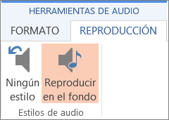 - Con el icono de audio seleccionado en la diapositiva, en la pestaña Reproducción, seleccione Reproducir en segundo plano.